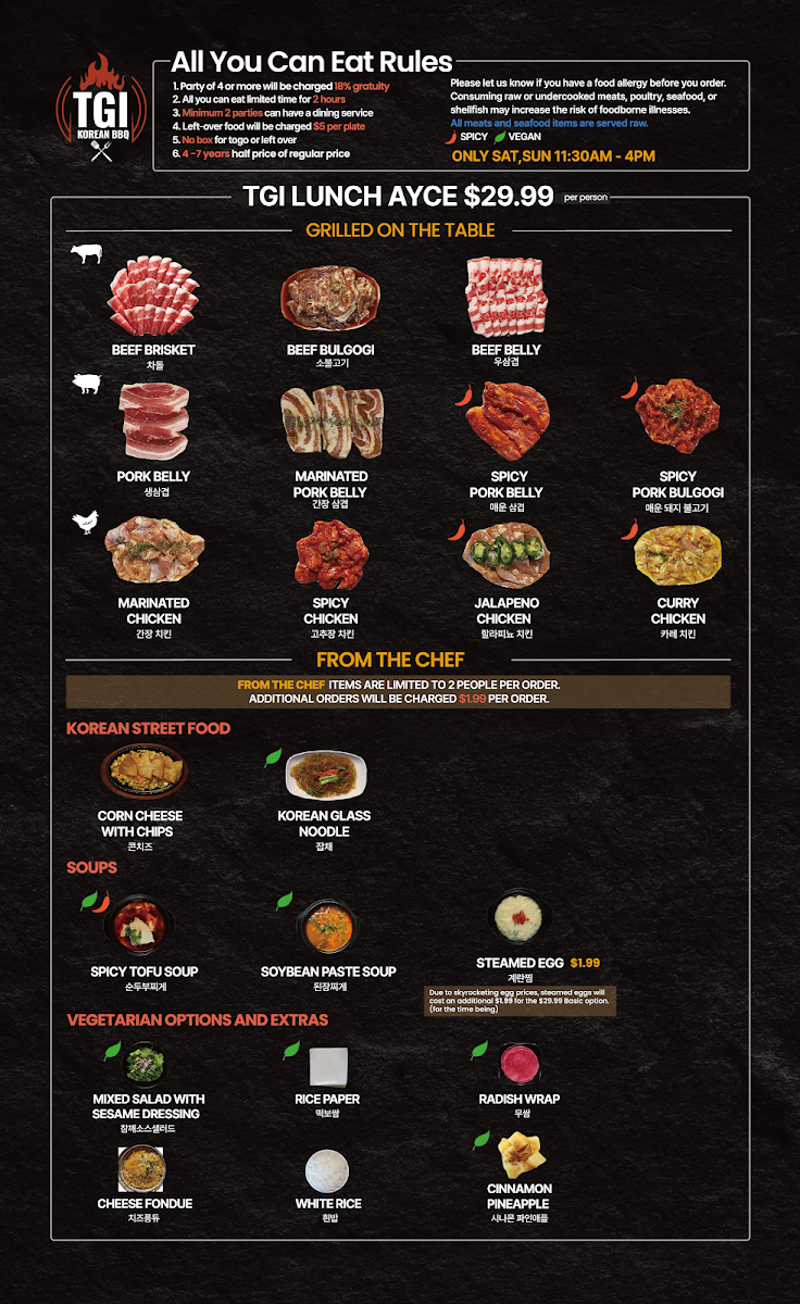 TGI Korean BBQ isn’t just a meal; it’s an experience to savor. Whether you're celebrating a special occasion or just looking to indulge in exceptional Korean barbecue, this restaurant delivers with heart and flavor. Book your reservation today and get ready to take your taste buds on a delightful journey!